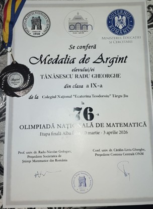Îl felicităm din toată inima pe Radu Tănăsescu, elev în clasa a IX-a, care a cucerit Medalia de Argint la Olimpiada Națională de Matematică și s-a calificat la baraj! O realizare extraordinară!